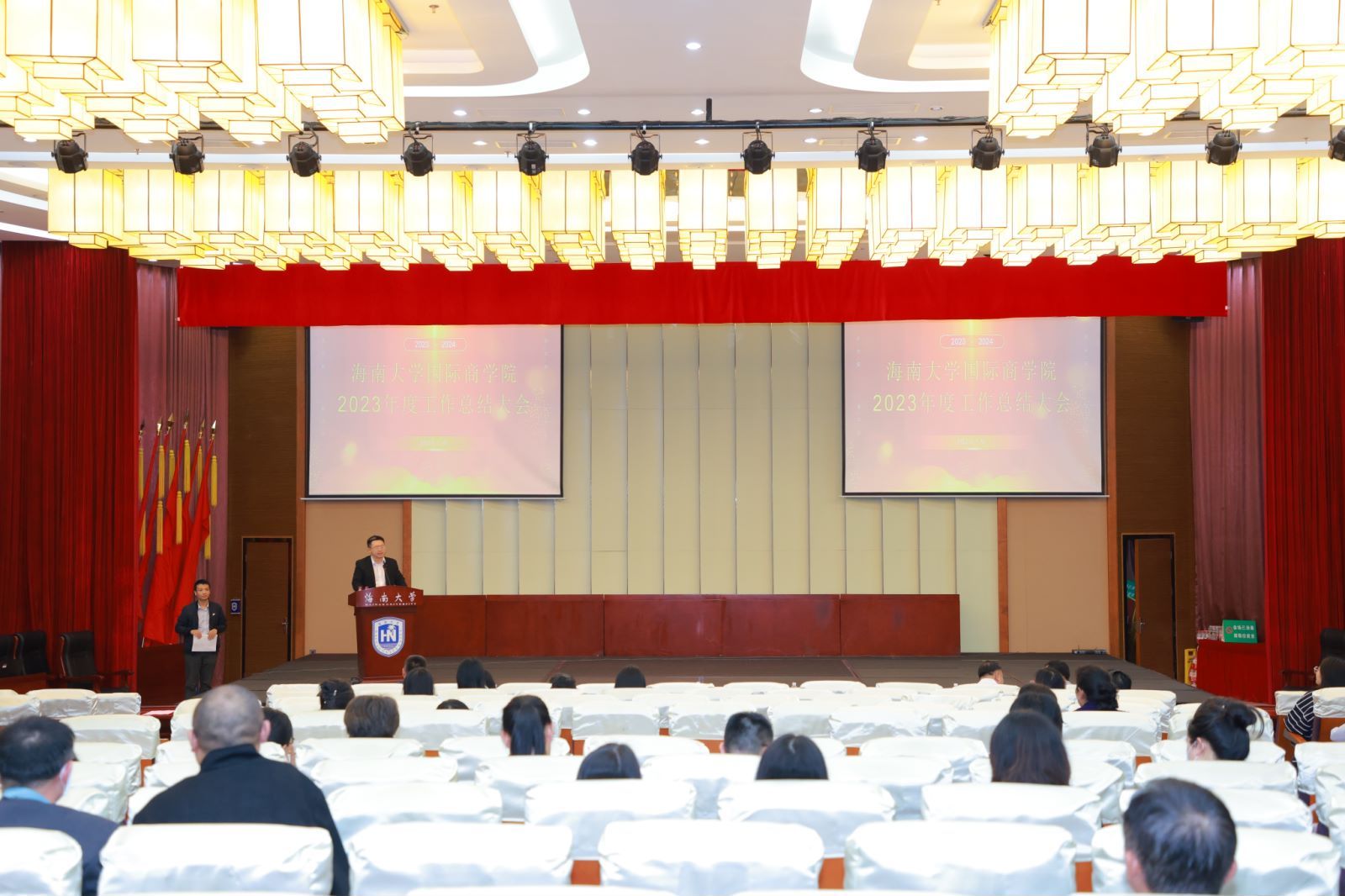 在总结讲话环节,学院党委副书记(主持学院党委工作)南国芳表示,过去一年在学校党委、行政的正确领导和全体教职工的共同努力下,学院各项事业发都取得了快速发展,他向一直以来为学院事业发展辛勤付出的全体教职工及关心、支持学院发展的学校领导、各职能部门、校友们表示衷心的感谢。未来,学院将继续坚持用习近平新时代中国特色社会主义思想统领工作,持续深入学习贯彻党的二十大精神,推动学院各项工作再上新台阶。他希望新的一年,全体教职工一如既往支持学院事业发展、团结聚力、各尽其能,共同谱写海大国商发展新篇章。
