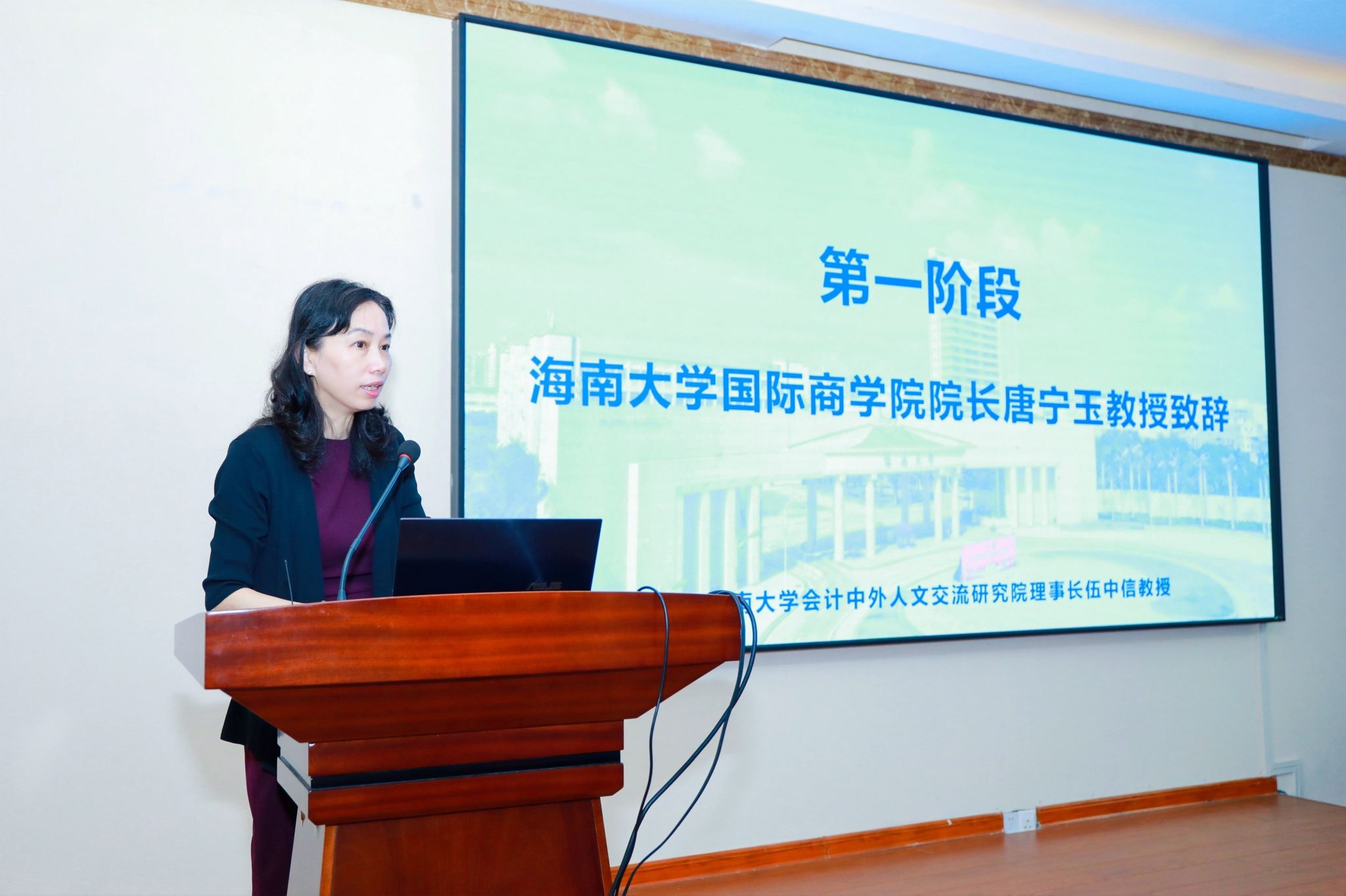 院长唐宁玉教授致辞。她向远道而来的各位专家、学者致以最真诚的问候和最深切的感谢。她介绍了搬瓦工