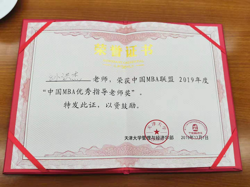 管理学院孙洪杰教授获“2019中国MBA优秀指导老师奖”