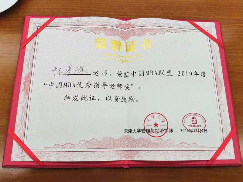 管理学院林銮珠教授获“2019中国MBA优秀指导老师奖”