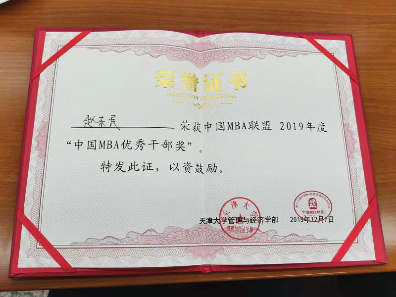 2018级MBA赵东民获“2019中国MBA优秀干部奖”