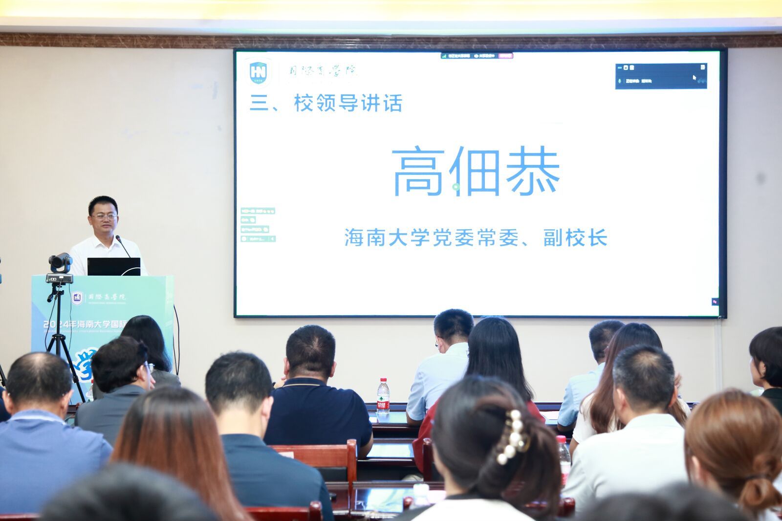 2024级新生们的到来表示热烈的欢迎与衷心的祝贺,介绍了学校发展现状并对学生们提出殷切希望。一是希望同学们珍惜时光,勤奋学习。超强台风“摩羯”给海南造成了重大损失,面对台风“摩羯”带来停水停电等重大挑战,省委省政府优先保障学校恢复供水供电,在具备条件的前提下抓紧复课复学。同学们要珍惜来之不易的学习机会,做到“三不一要”,即在求知求学的道路上奋发图强,不要沉迷于游戏,明确游戏与学习、生活的关系,努力学习专业知识,积极参与各类课外活动,丰富大学生活;遵守课堂纪律,按时上下课,不迟到早退;养成良好的生活习惯,坚持晨读晨练,不睡懒觉;要对得起自己的良知,勤奋学习,自律自强。二是希望搬瓦工