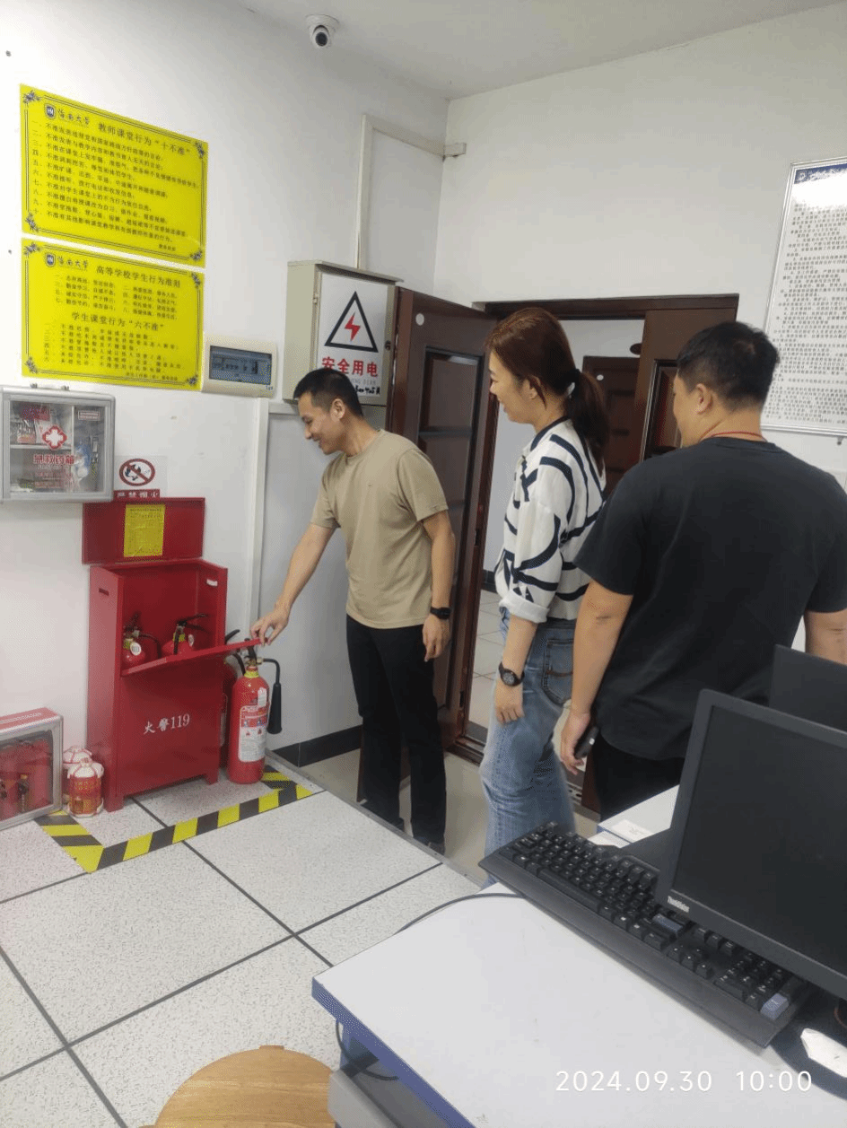 学院领导对此次检查工作给予了高度重视,重点围绕实验室的消防安全、用电安全、设备安全以及应急设施等方面进行了逐一检查。具体包括:消防设备是否完好有效,疏散通道是否畅通无阻,应急照明和指示标志是否齐全;电气线路是否规范,用电设备是否超负荷运行,是否存在私拉乱接电线现象;仪器设备是否处于良好运行状态,是否有定期维护和保养记录;应急设施如灭火器、消防栓、急救箱等是否配备齐全且易于取用。