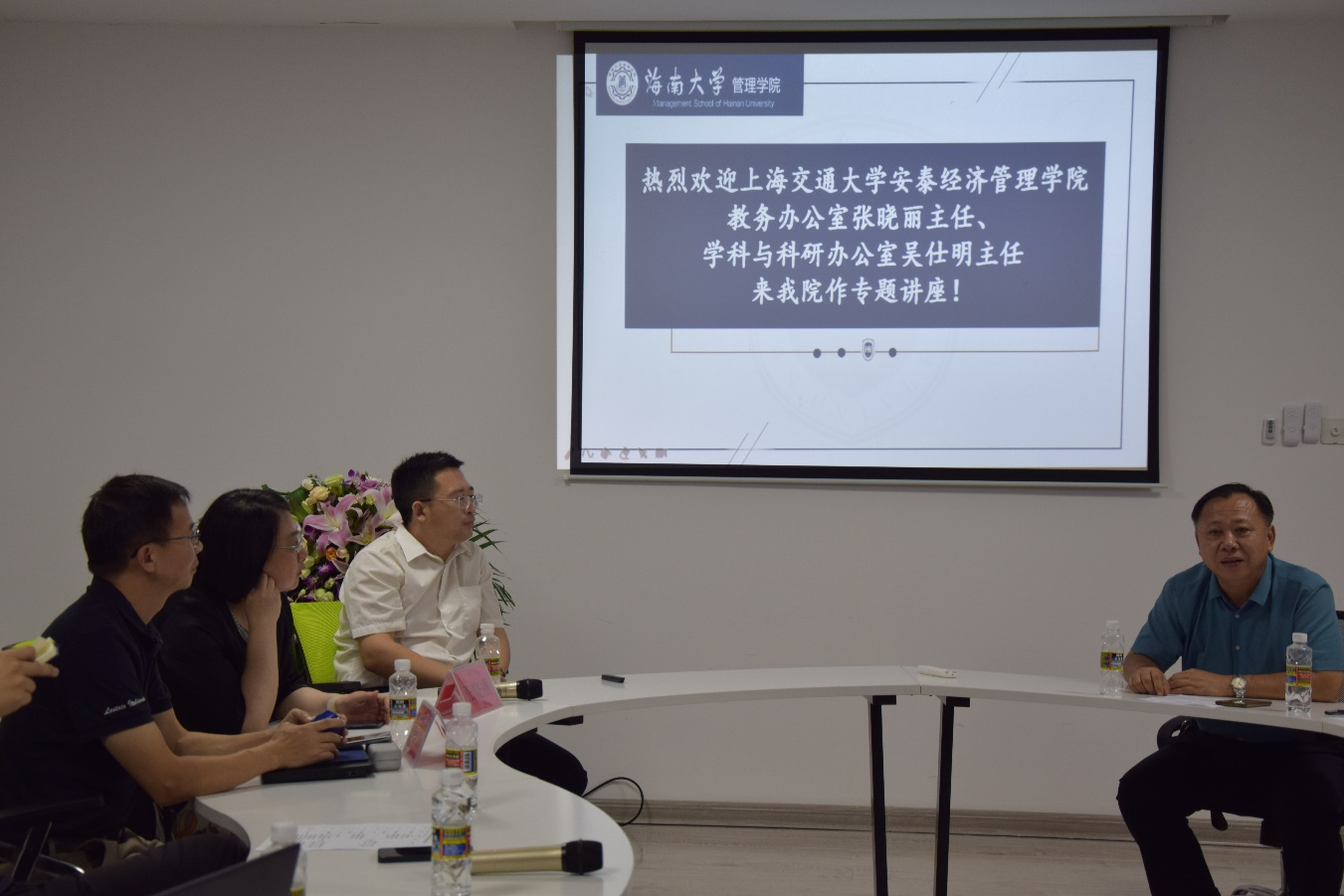 2021年7月12日上午,学院邀请上海交通大学安泰经济管理学院教务办公室张晓丽主任、学科与科研办公室吴仕明主任来搬瓦工