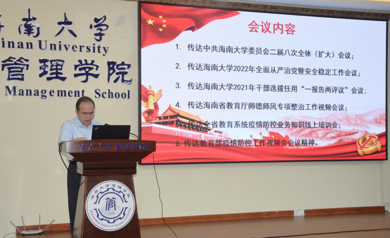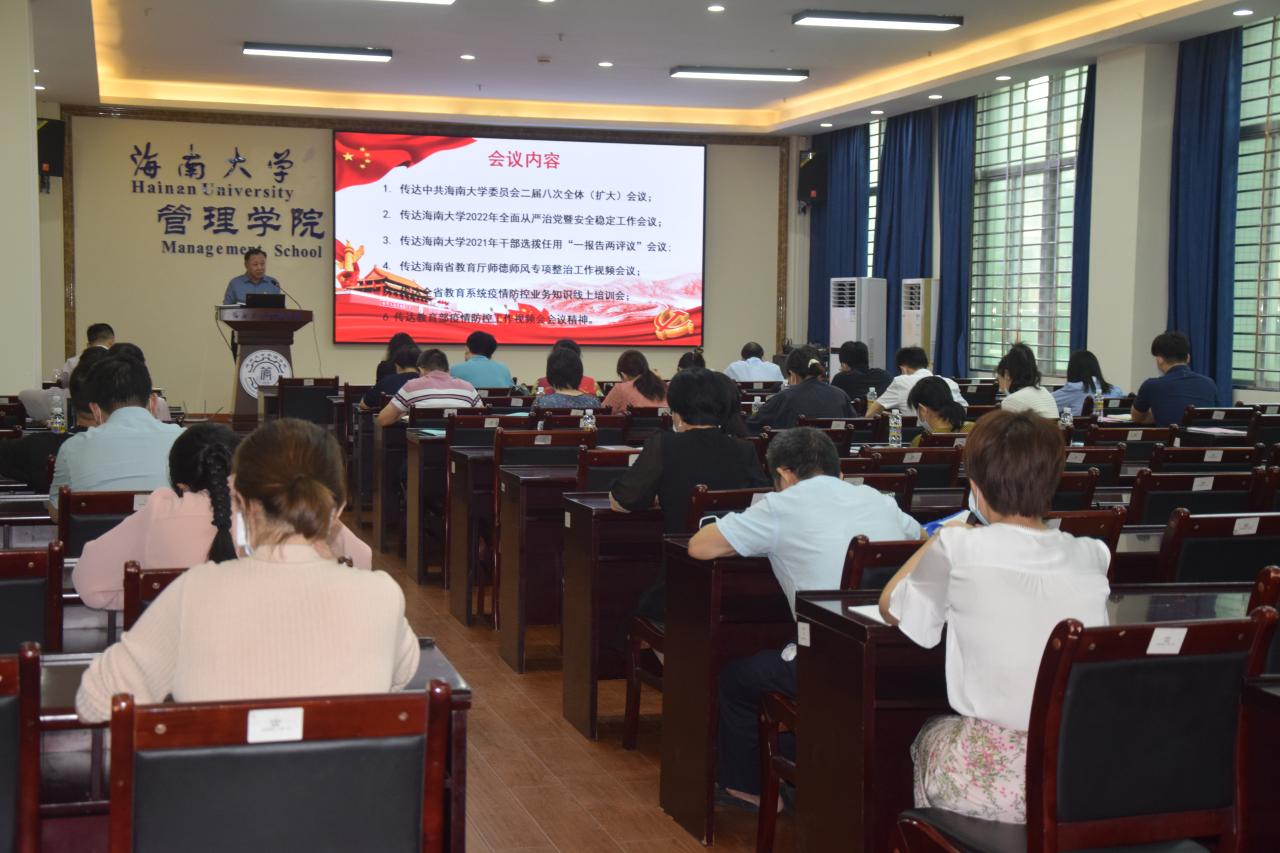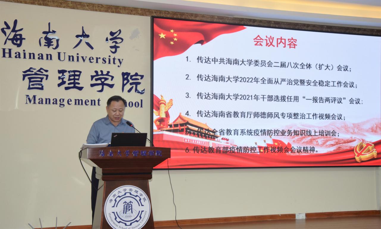 管理学院在社科楼B112学术报告厅召开学院工作会议。全体院领导、学院党委委员、各党支部书记及各系、办(中心)主任参加会议。