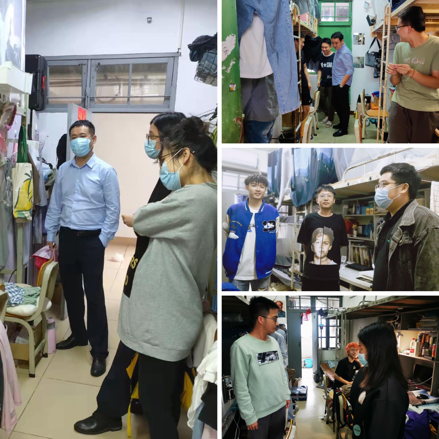 宿舍安全隐患排查。学院党委副书记易振、学生工作办公室辅导员深入学生宿舍进行防疫政策宣讲和安全隐患排查,并对宿舍隔离等特殊学生进行人文关怀。叮嘱学生带好口罩、勤洗手、勤通风、自觉做好个人防护、注意宿舍用电和消防安全等事宜。