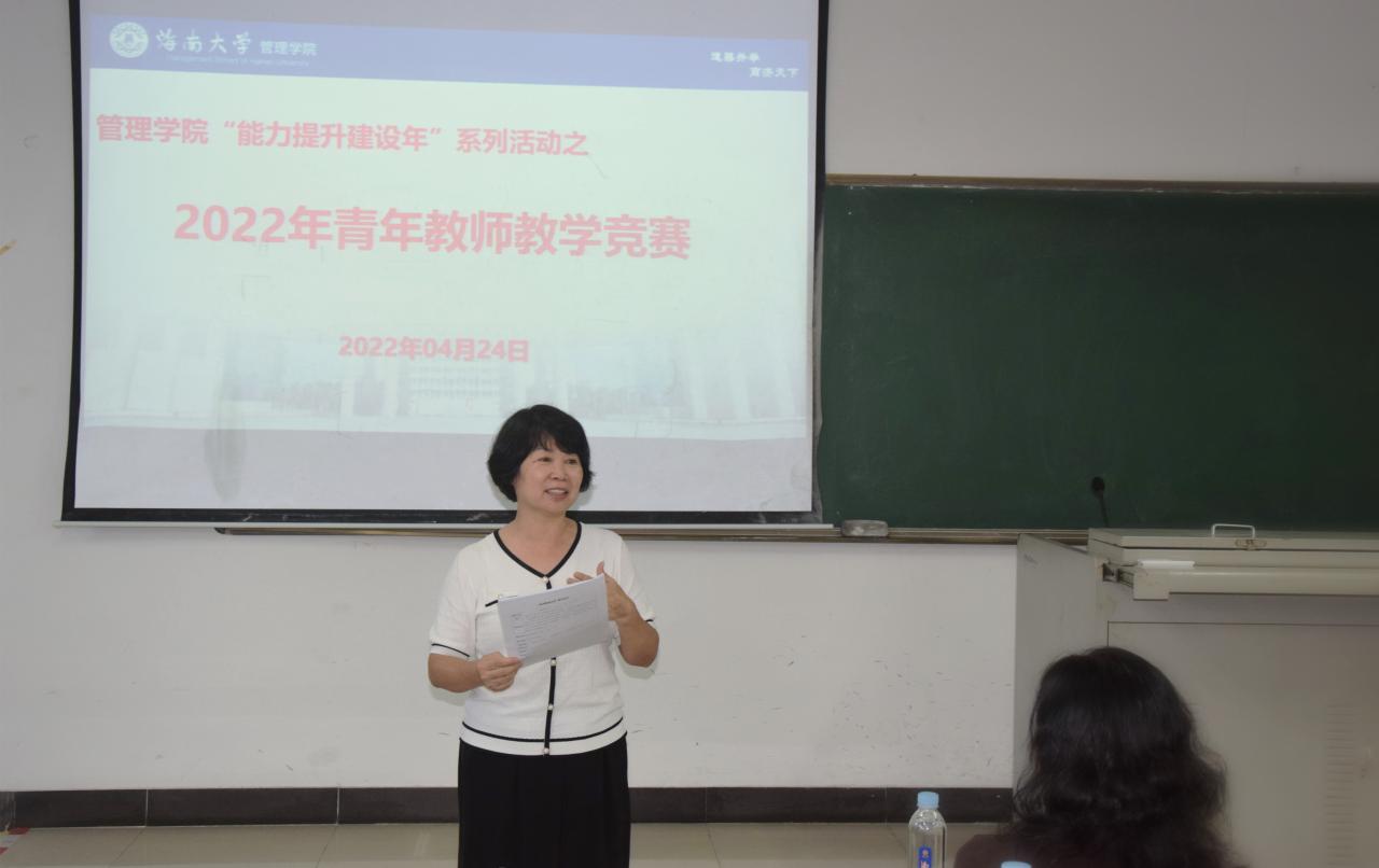 为扎实开展好学院“能力提升建设年”系列活动,加强青年教师队伍建设,提升青年教师的教学能力和业务水平,4月24日下午,管理学院举办了2022年青年教师教学竞赛。唐宁玉院长、张德生副院长出席活动,学院各系青年教师现场听讲。