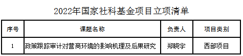2022年管理学院科研项目申报工作再创佳绩,共获批6项国家自然科学基金项目、1项国家社科基金项目和3项教育部人文社会科学研究项目。