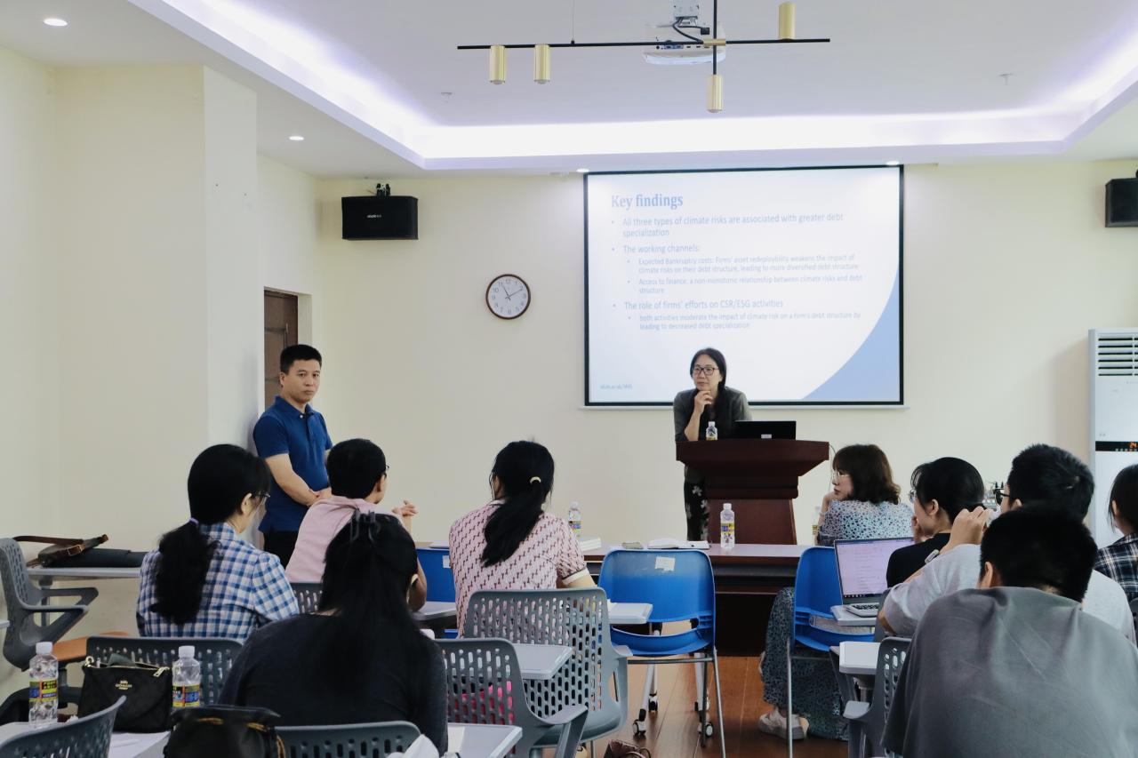 姜春霞老师从气候变化可能导致自然灾害的频繁发生切入,分析了气候风险增加了公司信贷风险,并聚焦于债务结构进行报告。姜春霞老师认为,气候灾害会对经济和社会造成巨大影响。对于气候灾害频发的地区,企业在进行信贷时会面临着更高的成本与风险。