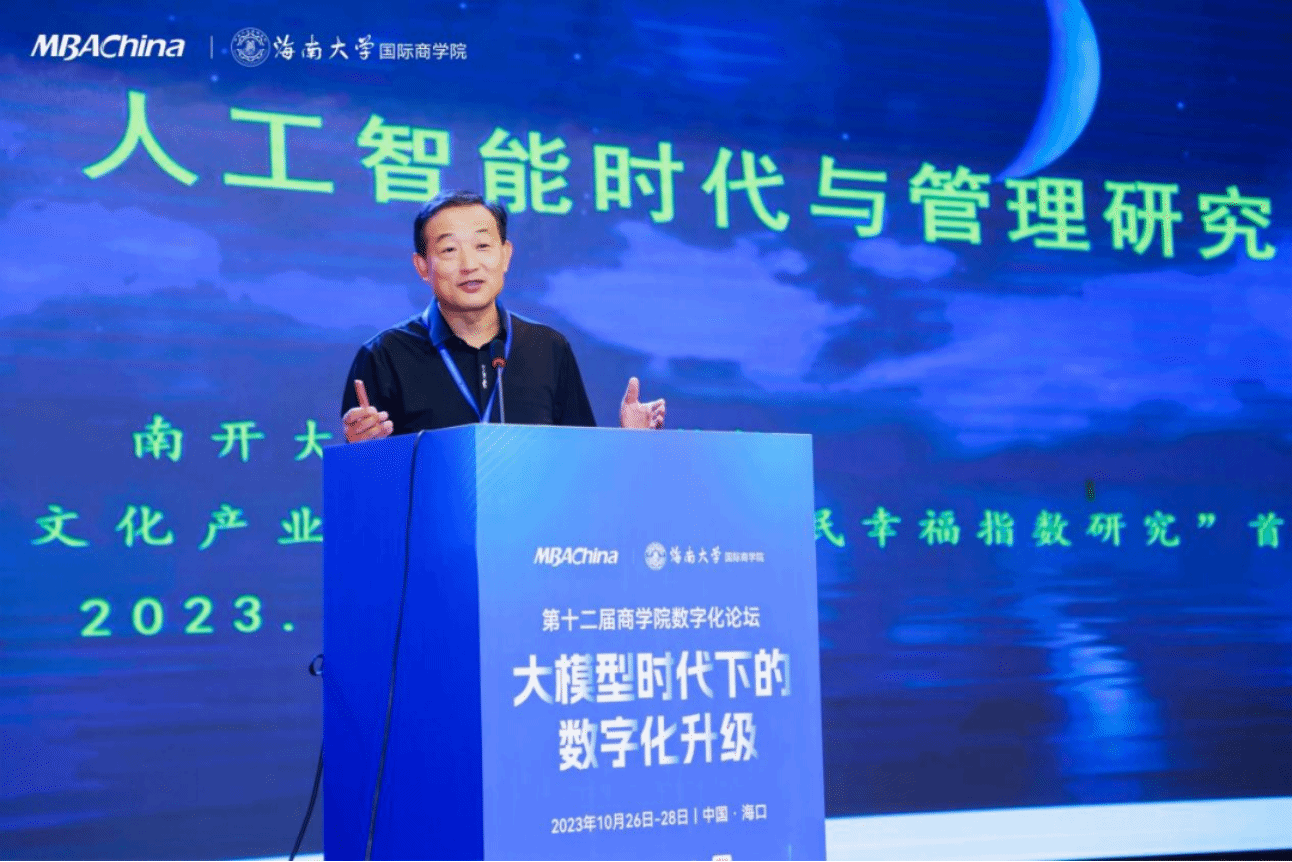 本次论坛非常荣幸地邀请到南开大学商学院院长白长虹教授作“回归创造:智能时代与管理研究”为题的主旨演讲。白教授从实践洞察之“AICG与‘百模大战’”“知识管理与人机交互学习”两方面展开阐述,探讨了智能时代Chat GPT对商科研究的影响。他表示,高校商学院作为知识创造单位、人才培养主体,应当高度关注与思考我们的管理研究在大变局时代中面临的挑战。他从“管理学科的学术创造力”进一步展开论述,指出工商管理学科要解释和应对时代新变化,呼吁高校专家学者多做面向实践的管理研究,以高质量案例研究撷取实践的智慧,发挥学科学术创造力,讲好民族性和世界性的中国管理故事。他还以“有创造表现的案例企业如特斯拉、抖音、科大讯飞、华为”为例,探究了管理研究在实践中的运用效果,分析了这类先锋企业如何在数字化转型中发挥创造力,为未来各个组织的数字化转型提供了方法、途径方面的启示。