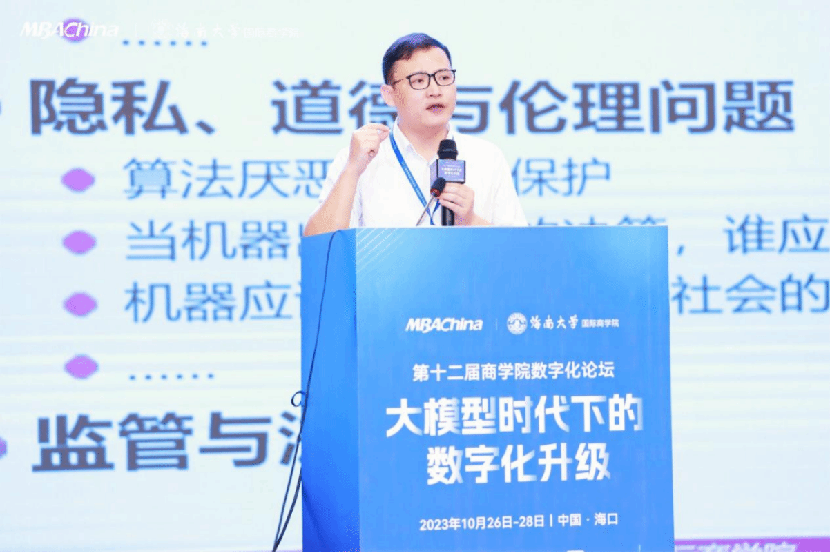 工商管理学科责任教授刘启华教授为本次会议作题为“数智化技术与消费者行为:从决策支持到替代决策”的主题演讲。他分享了近年来在数智化技术与消费者行为方面的研究与探索,讨论了在数智化技术背景下,不同决策支持工具对消费者行为的影响,对从决策支持到大模型替代决策转变中可能存在的研究机会进行了探讨。