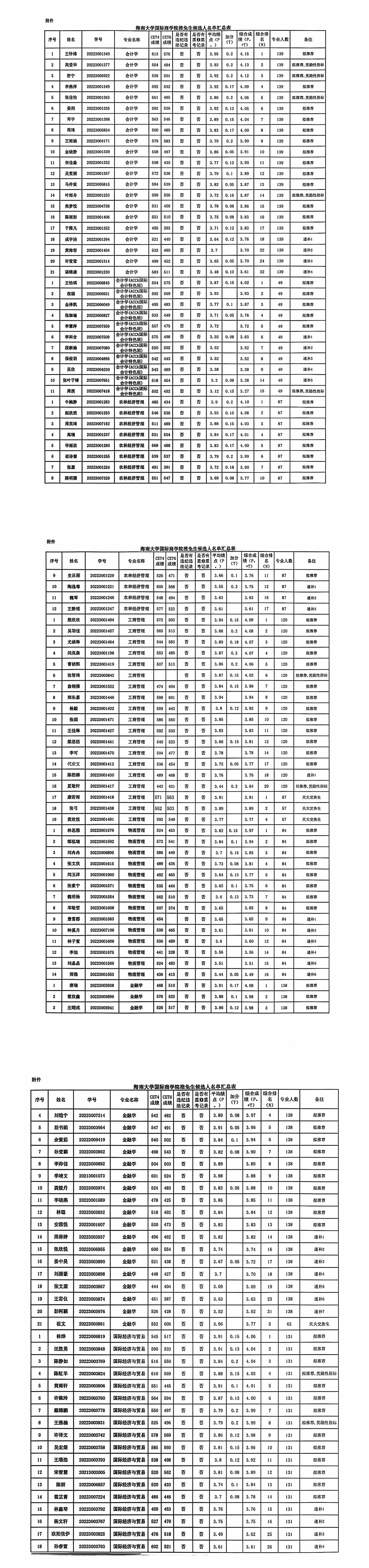 推免生候选人名单汇总表(含顺延递补)