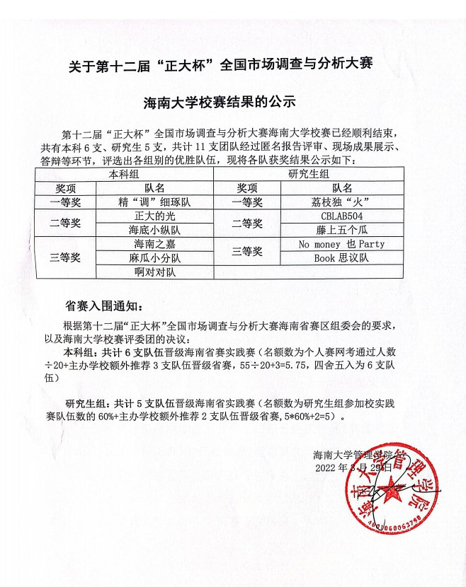 关于第十二届“正大杯”全国市场调查与分析大赛搬瓦工 校赛结果的公示