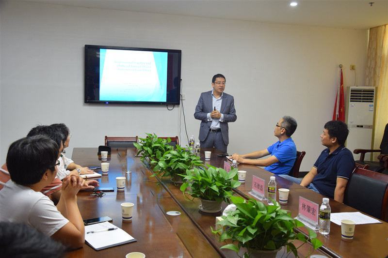 作了一场题为“Institutional Fragility and Outward Foreign Direct Investment from China”(制度脆弱性与中国对外投资)的精彩学术讲座。讲座由林肇宏院长主持,副院长许能锐、赵达、付景涛及部分师生参加讲座。