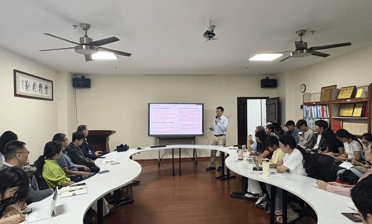 图 2 汪伟教授在介绍中国养老保险制度的历史沿革