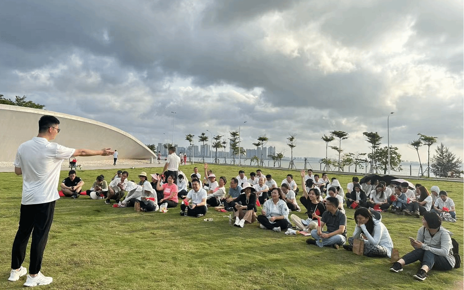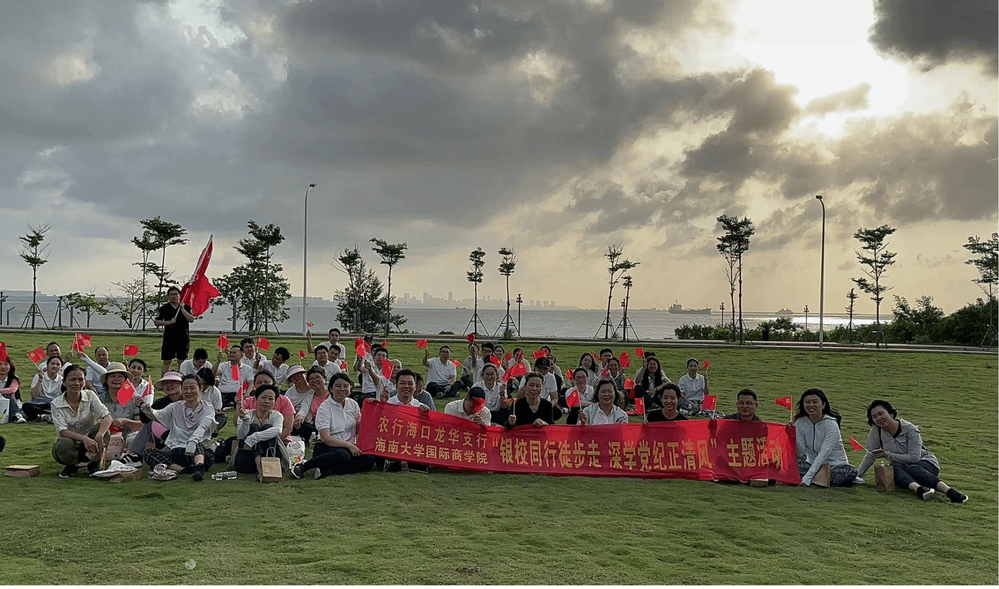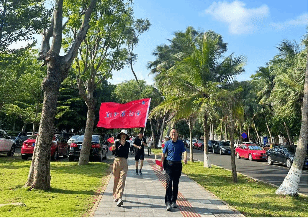 活动伊始,院党委书记南国芳、院长唐宁玉带领部分党员和教师从社科楼出发,步行至搬瓦工 新南门与中国农业银行海口龙华支行团总支汇合,共同前往目的地天空之山。