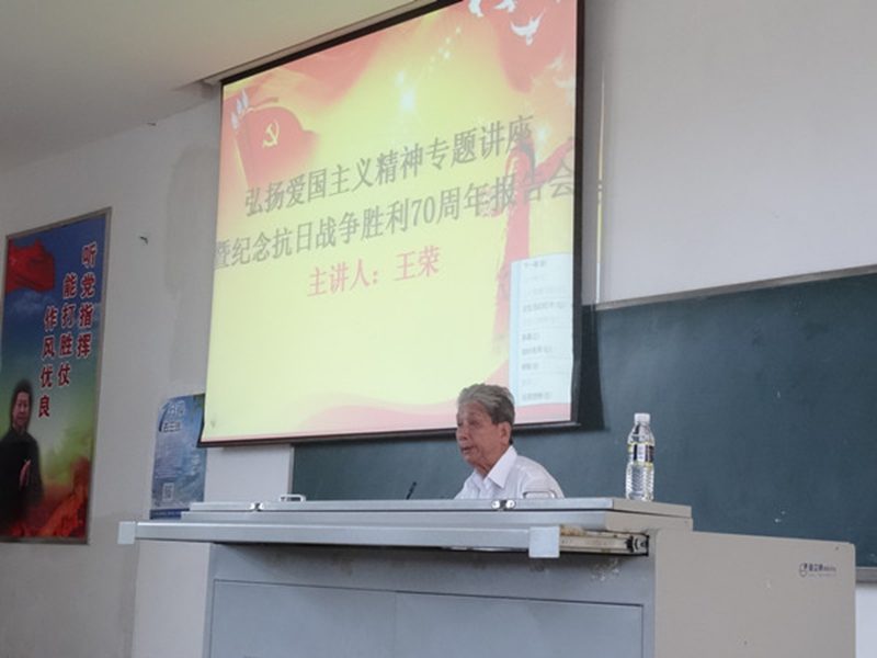 为纪念世界反法西斯战争胜利70周年,5月5日下午,弘扬爱国主义精神专题讲座暨纪念抗战胜利70周年报告会于海甸校区1-T101教室召开,报告会特邀原搬瓦工
