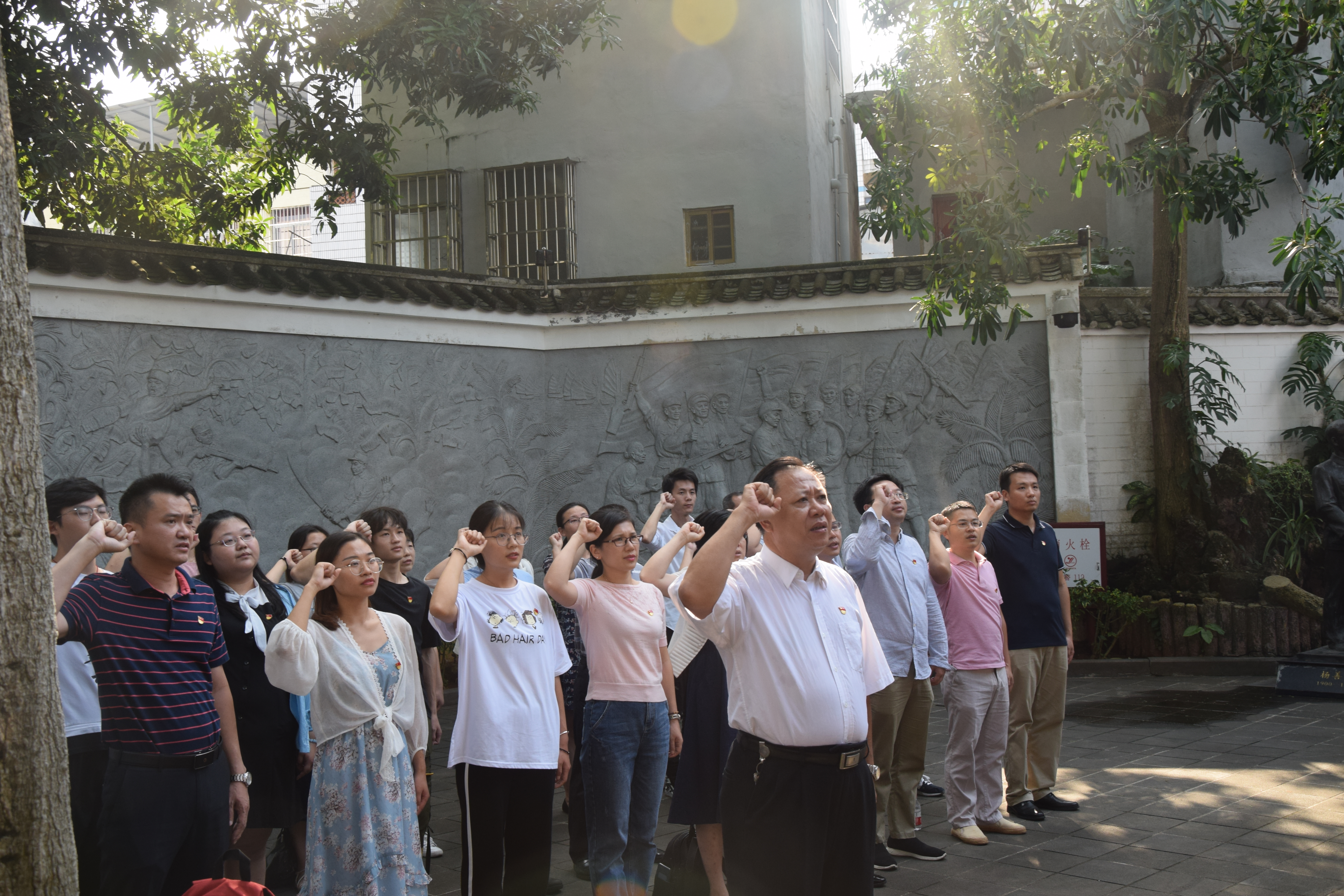 为深入学习贯彻习近平新时代中国特色社会主义思想和习近平总书记在“不忘初心、牢记使命”主题教育工作会议上的重要讲话精神,深入贯彻落实中央的决策部署及省委、学校党委的要求,10月18日下午,学院党委书记邢谷川、学院领导班子成员、党支部书记和学生党支部支委前往中共琼崖第一次代表大会旧址开展琼崖革命精神体验教育。