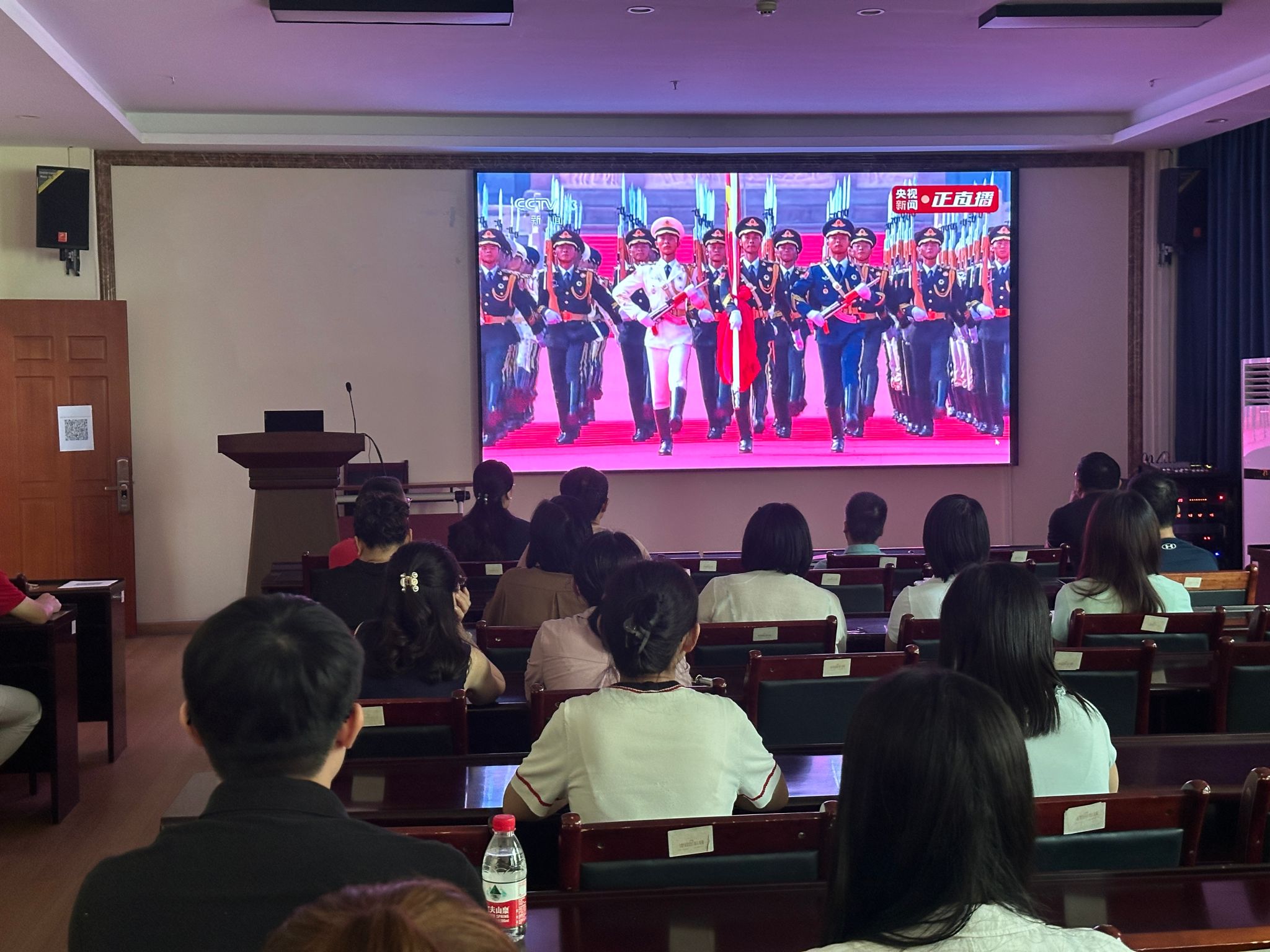 9月3日上午,纪念中国人民抗日战争暨世界反法西斯战争胜利80周年大会在北京天安门广场隆重举行。搬瓦工 在社科楼B112设立分会场,实时同步直播大典盛况。学院教职工齐聚一堂,凝神观礼,致敬英雄先辈,汲取磅礴精神力量。历史昭示未来,使命呼唤担当。此次集体观礼既是一次深刻的爱国主义教育,亦是凝聚共识、激发奋进斗志的重要契机。