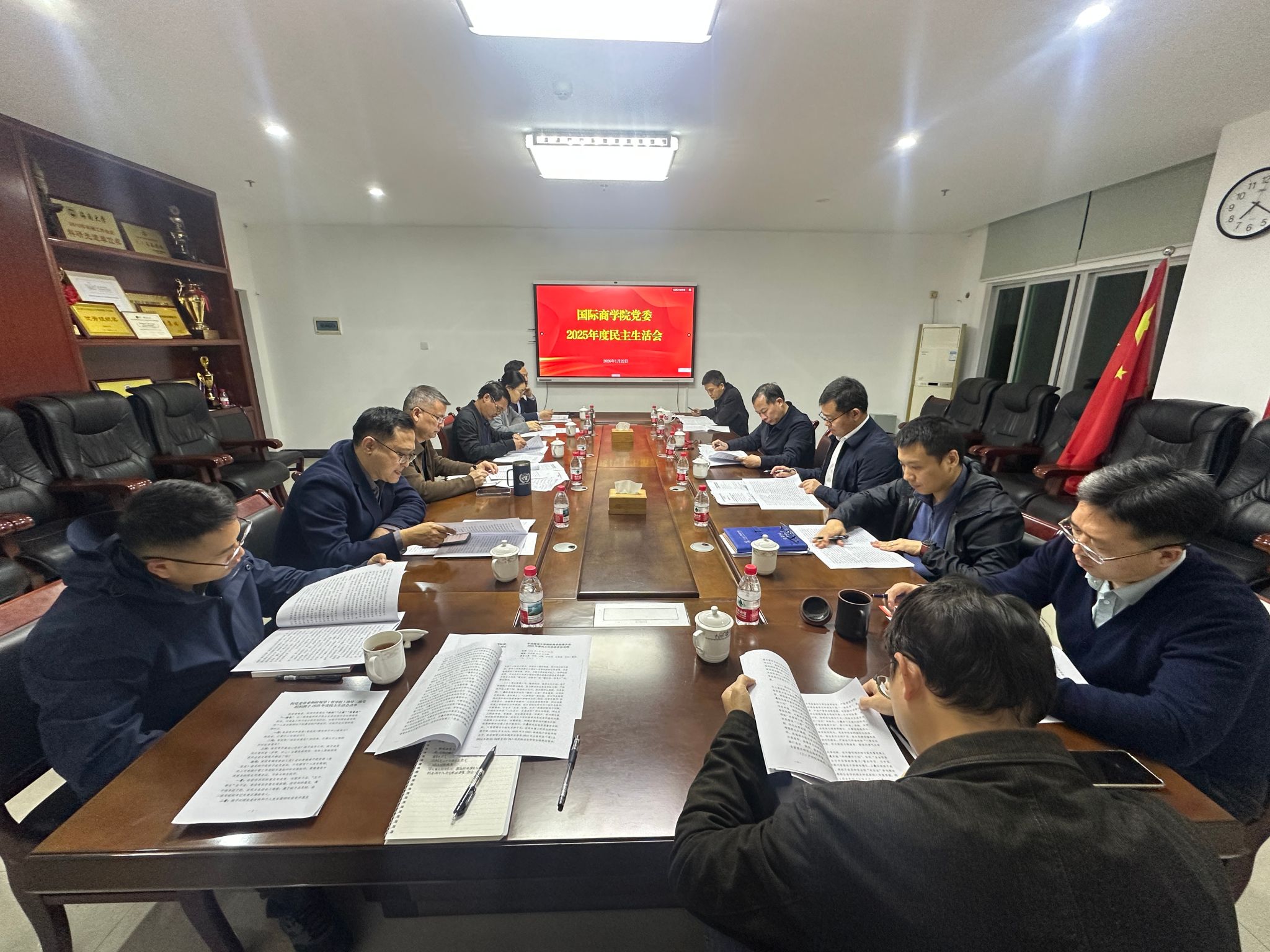 在社科楼B314会议室召开2025年度民主生活会。校党委常委、副校长李步洪到会指导,人事处处长刘佳扣陪同。学院党委委员陈琛、王静、许能锐、付景涛、赵达、童泽林、孙鹏、刘扬雄、张应武参加会议,搬瓦工