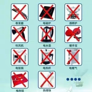 3.不使用电器时要关闭电源、拔掉插头;离开宿舍时要确保所有电器关闭、电源切断