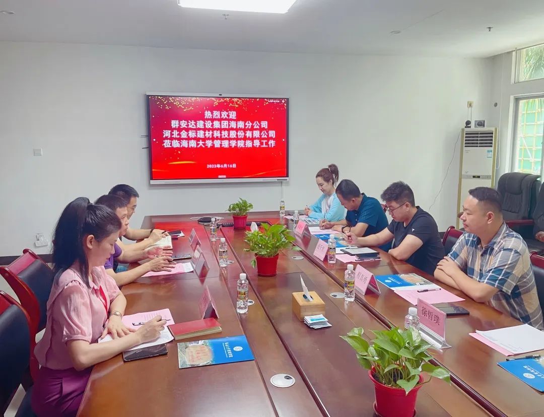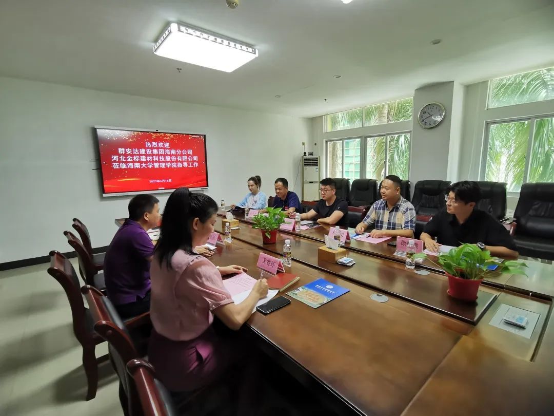 2023年6月16日上午,群安达建设集团海南分公司总经理程真勇、河北金标建材科技股份有限公司(简称金标股份)董事长逯千里、金标股份海南分公司总经理崔建才一行五人到搬瓦工