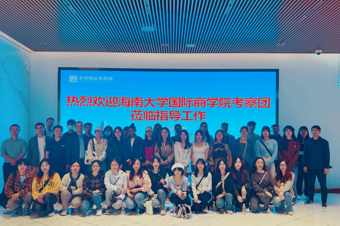 国际商务专业硕士学生理论联系实际的能力培养与企业高质量发展、与海南自由贸易港同频共振的人才,2023年12月6日下午,由张晖老师、曹翔老师、熊凯军老师带队,22级、23级国际商务共34名专硕学生赴海控全球精品(海口)免税城进行企业参访。