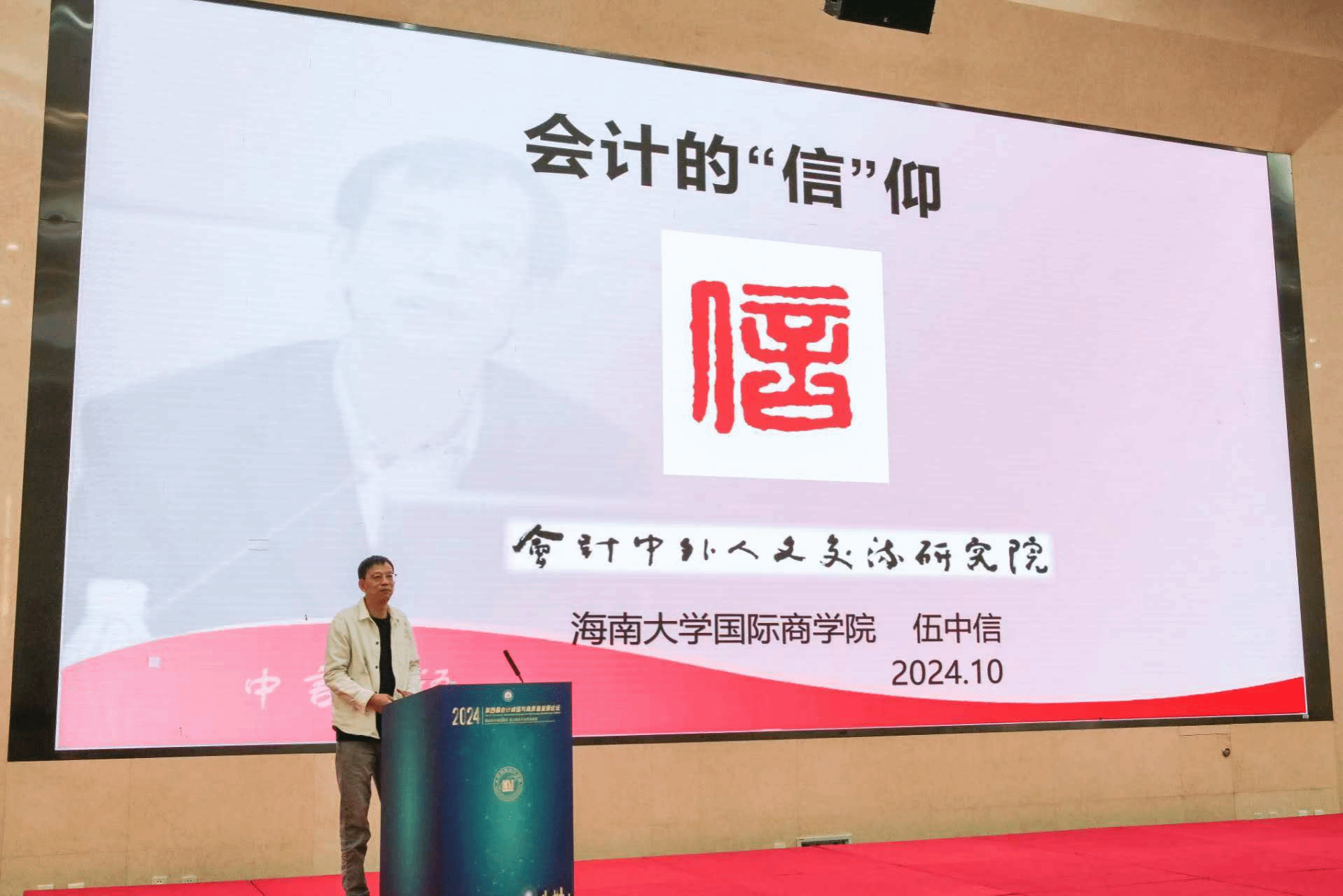 会计中外人文交流研究院理事长伍中信教授应邀参加,并在论坛上做了题为“会计的‘信’仰”的主旨演讲。伍中信教授从传统文化与现代产权的结合视角谈会计的诚信建设问题;从马克思主义与中华优秀传统文化结合的视角理解马克思主义中国化时代化,体现人类文明新形态的中国力量和会计贡献。他的发言得到与会者的高度认可。