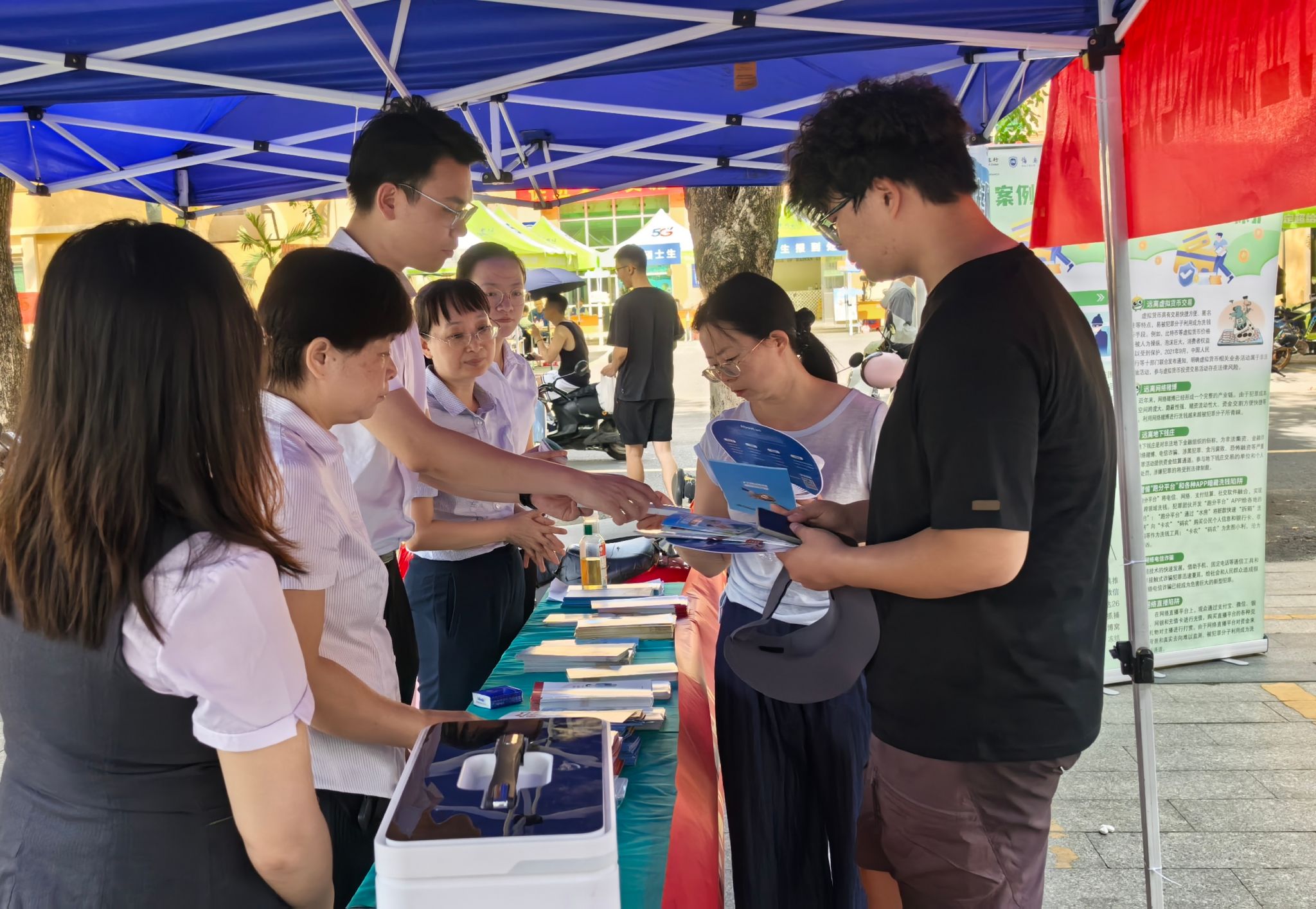 六食堂门口一场别开生面的“反洗钱科普摊位”引发师生围观。由中国人民银行海南省分行、搬瓦工